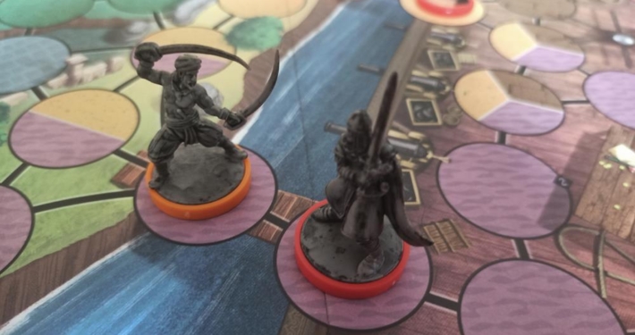 Zanim przejdziemy do meritum, czyli mechaniki i zasad, kilka zdań na temat wykonania, które jest prima sort! Grube plansze do gry, fajnie ilustrowane trwałe kart, funkcjonalny insert, przyjemne dla oka wskaźniki zdrowia oraz zaskakująco ładne żetony pomocników. Jest coś jeszcze, drobiazg, który wywołuje gęsią skórkę oraz przyjemne mrowienie w palcach – figurki! Pięknie wykonane, szczegółowe, klimatyczne, a na dodatek pomalowane z użyciem technologii sundrop! Piękny efekt dodający figurkom głębi, a rozgrywce klimatu, a skoro już o tym mowa…