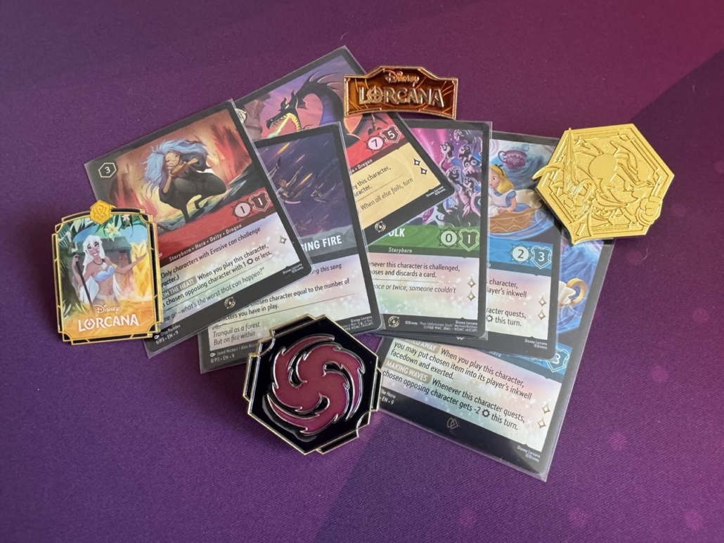 Patrząc z perspektywy doświadczonego gracza, Lorcana jest grą mechanicznie nieskomplikowaną i intuicyjną. Rozgrywka opiera się na predefiniowanych lub personalizowanych taliach (zazwyczaj to drugie), złożonych z co najmniej 60 kart, reprezentujących maksymalnie dwa kolory atramentu. Łącznie w grze znajdziemy sześć kolorów: Amber, Amethyst, Emerald, Ruby, Sapphire, Steel. Nie są to frakcje — przynajmniej z nazwy, chociaż budzą podobne skojarzenia. Kolory inkaustu reprezentują różnorodne style gry i umiejętności: